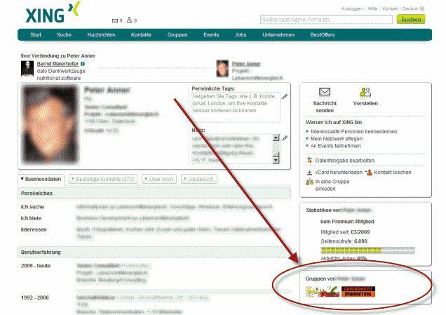 Bei jedem Kontakt ist angezeigt, welchen Gruppen er angehört. Einige widmen sich manchmal privaten Interessen, aber da XING ja eine Business-Plattform ist, finden Sie die Gruppen, die Ihre Zielgruppe frequentiert.